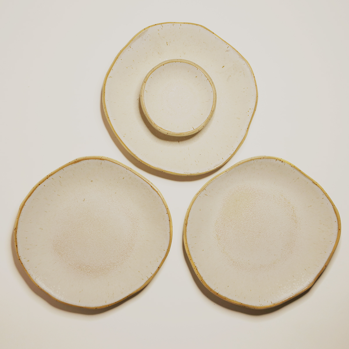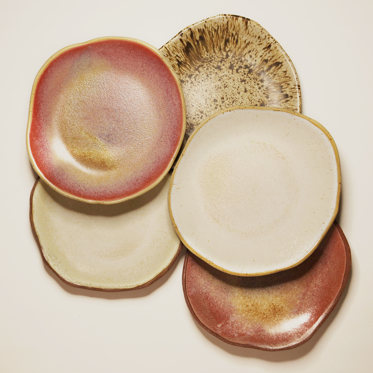 Każde naczynie, które powstaje w mojej pracowni jest unikatowe – robię je i szkliwię ręcznie. Szkliwa, których używam dają nipowtarzalne efekty, które pojawiają się podczas wypału na powierzchni naczyń. To oznacza, że każdy egzemplarz jest wyjątkowy, ma swój oryginalny kształt i odcień, i że dwa talerze nigdy nie będą takie same.